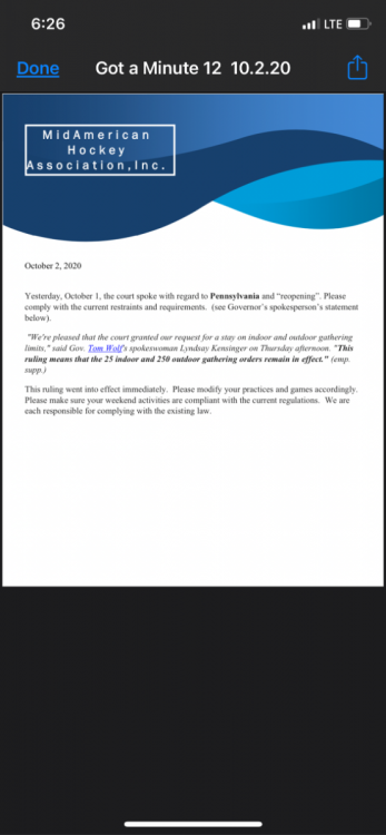 Things are confusing right now (since the pandemic, right?) because there is a 25 person indoor rule for PA, but not all rinks are following it. Or interpreting it very loosely. The Atlantic division put the 25 in place. I think Mid Am is expected to come out with something similar. USA hockey has published detailed return to hockey guidelines, but also footnotes it with you have to follow your state rules. We will hear soon I hope, impossible to try and plan a season otherwise.